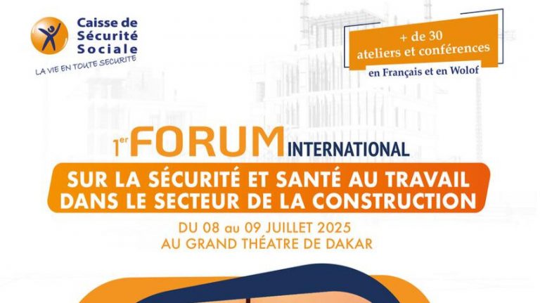 La Caisse de Sécurité Sociale (CSS) du Sénégal organise les 08 et 09 juillet 2025, au Grand Théâtre de Dakar, le 1er Forum International sur la Sécurité et Santé au Travail dans le secteur de la Construction. Organisé en partenariat avec plusieurs institutions nationales et internationales, ce forum d’envergure réunira